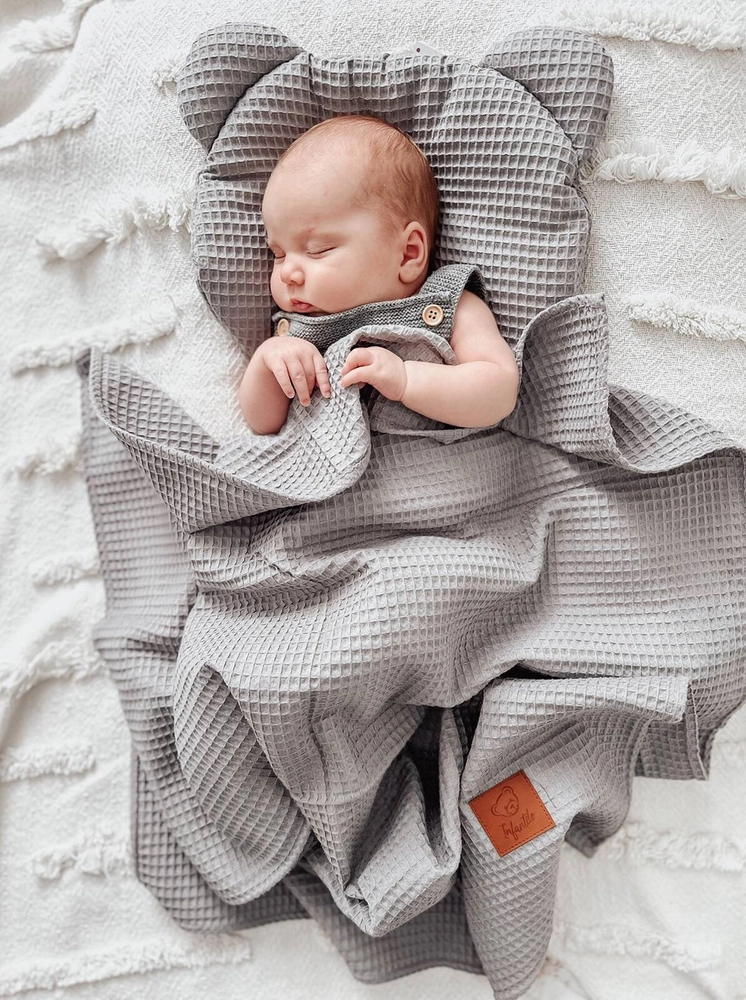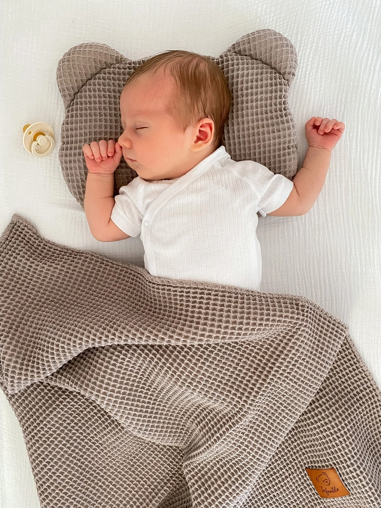 Dlaczego warto wybrać otulacz i poduszkę wafel? Taki komplet sprawdzi się zarówno jako standardowe wyposażenie łóżeczka, jak i pościel do wózka podczas spaceru. Jeżeli zależy Ci na komforcie i bezpieczeństwie Twojego dziecka, postaw na pościel z atestowanych materiałów wysokiej jakości. W przypadku kompletów wafel możesz liczyć nie tylko na dobrą klasę wykonania, ale też ładny, uniwersalny design, który świetnie wpasuje się w dowolny styl łóżka czy aranżację dziecięcego łóżeczka. Szeroki wybór kolorów pozwoli Ci dobrać komplet, który najlepiej dopełni przestrzeń spania Twojego dziecka.