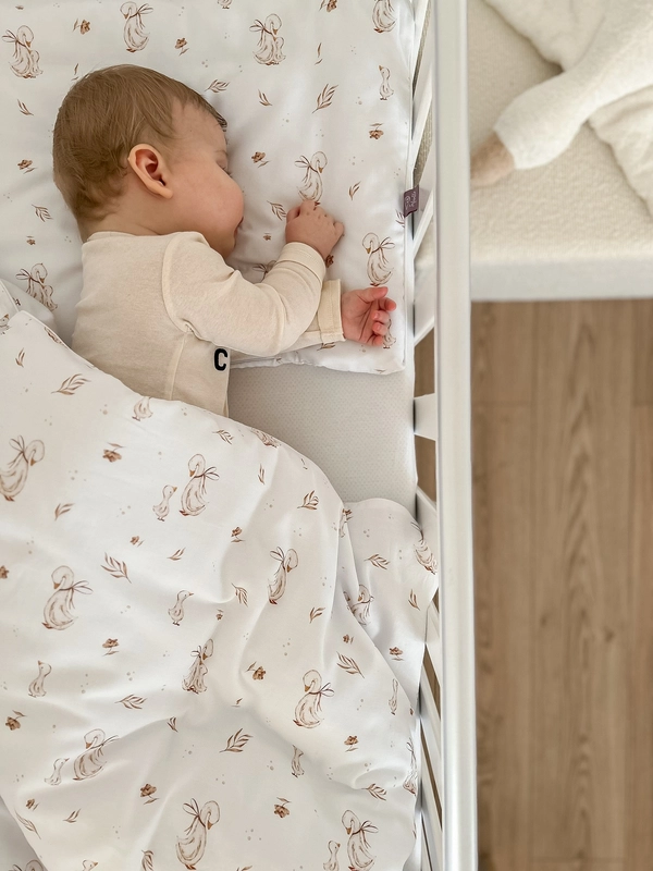 POŚCIEL MUŚLINOWA z falbanką 120x90 kołderka + poduszka WYPEŁNIENIE "MOMMY GOOSE"