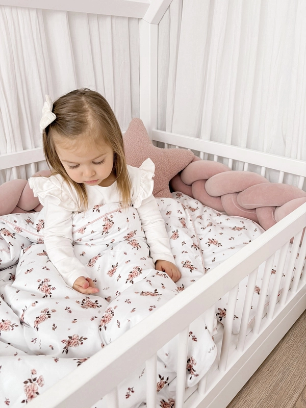 POŚCIEL MUŚLINOWA z falbanką 120x90 kołderka + poduszka WYPEŁNIENIE "LITTLE FLOWERS"