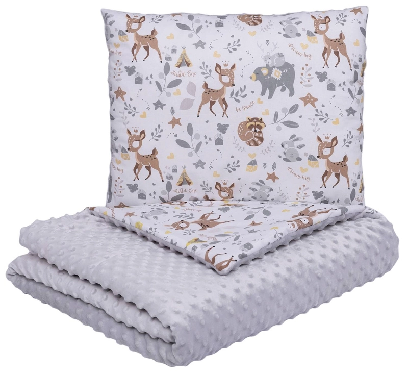U nas masz szansę dobrać zestaw pościeli dla przedszkolaka Minky w różnorodnej kolorystyce oraz ciekawym wzornictwie. Zarówno poduszka jak i kocyk są dwustronne: na jednej stronie znajduje się mięciutki materiał Milky, a druga strona wykonana jest z bawełny opatrzonej ciekawym wzorem.