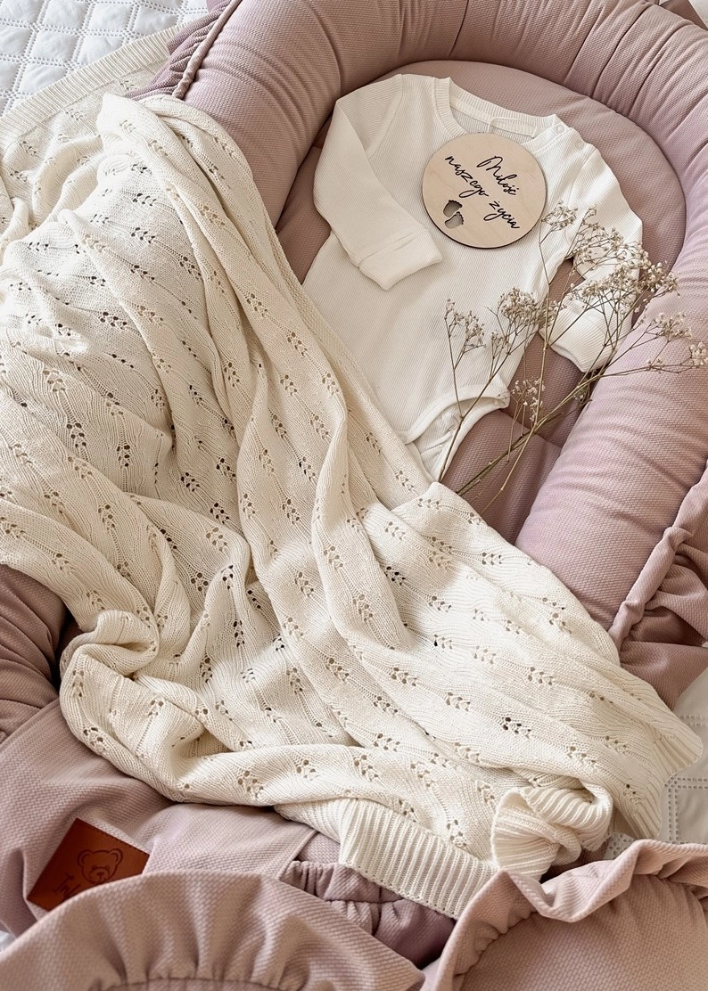 Dzięki swojemu ażurowemu splotowi kocyk jest przewiewny i oddychający - idealnie nadaje się na upalne dni.