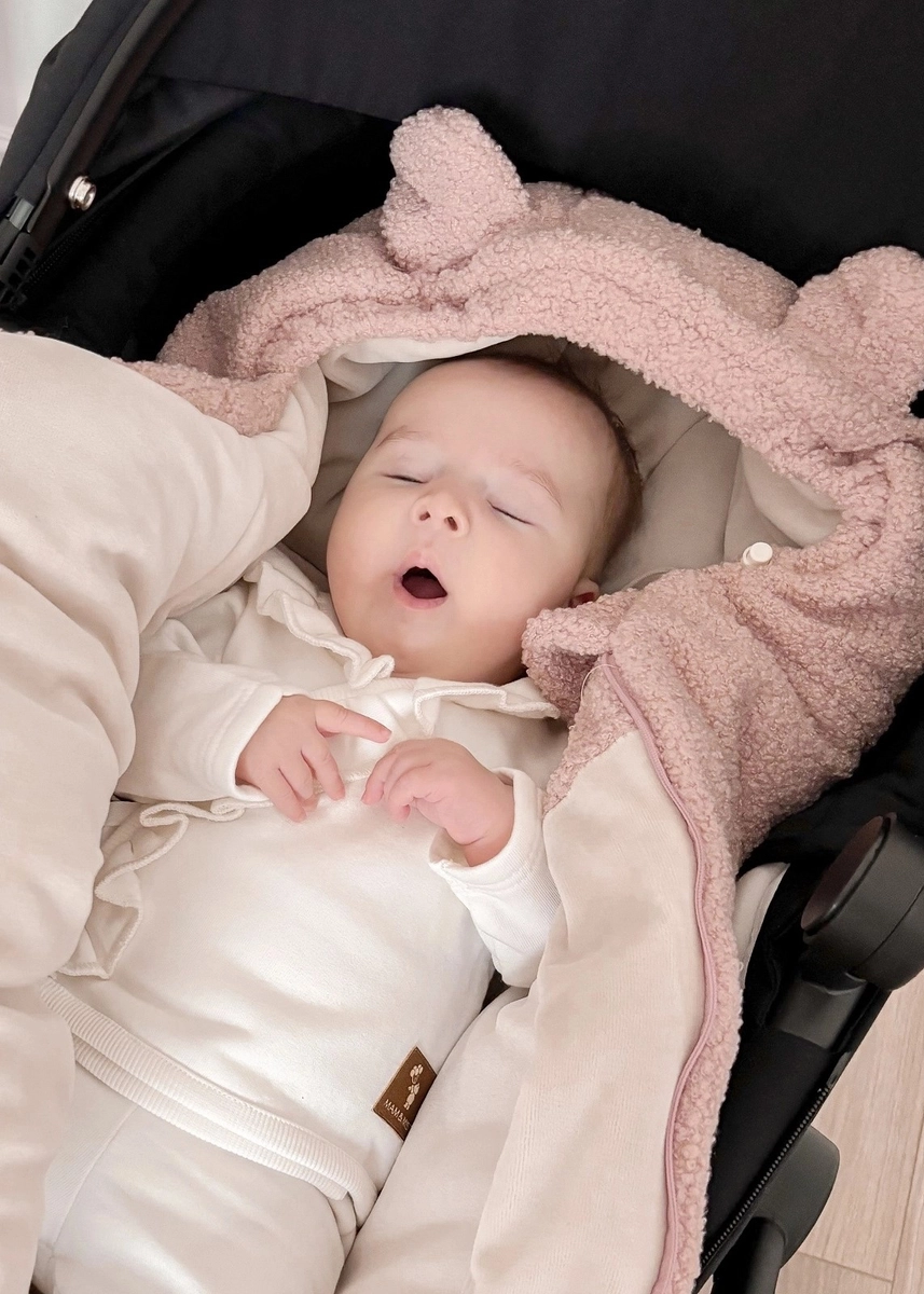- Miękki, delikatny i niezwykle ciepły śpiworek, sprawdzi się idealnie w wózku - gondoli, spacerówce oraz foteliku samochodowym.